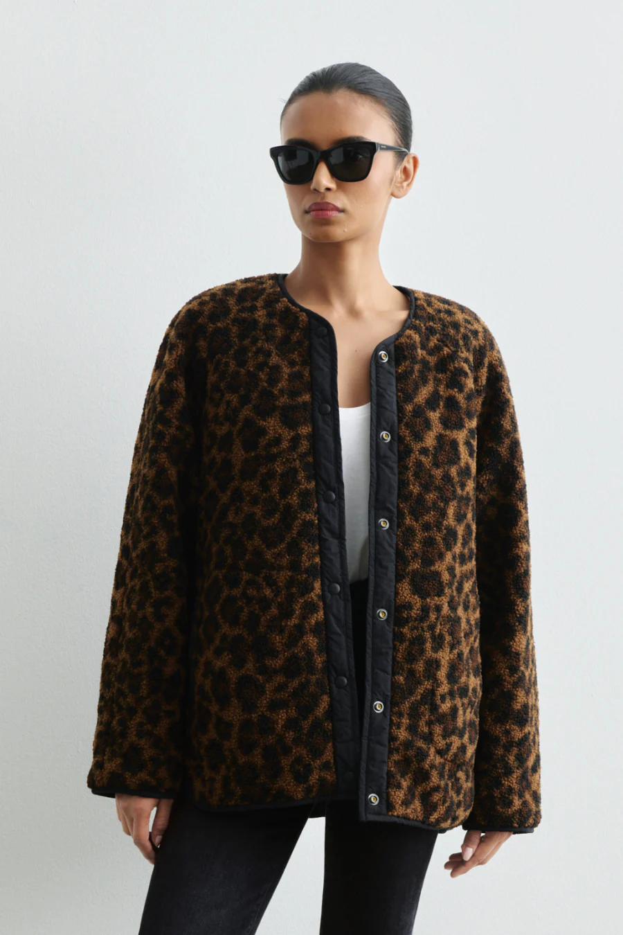 This is one of those pieces that, once you own it, will make you forget how you ever lived without it. A reversible fleece car coat with a chic collarless neckline. Snap closures, batted quilting, pockets on both sides.Â