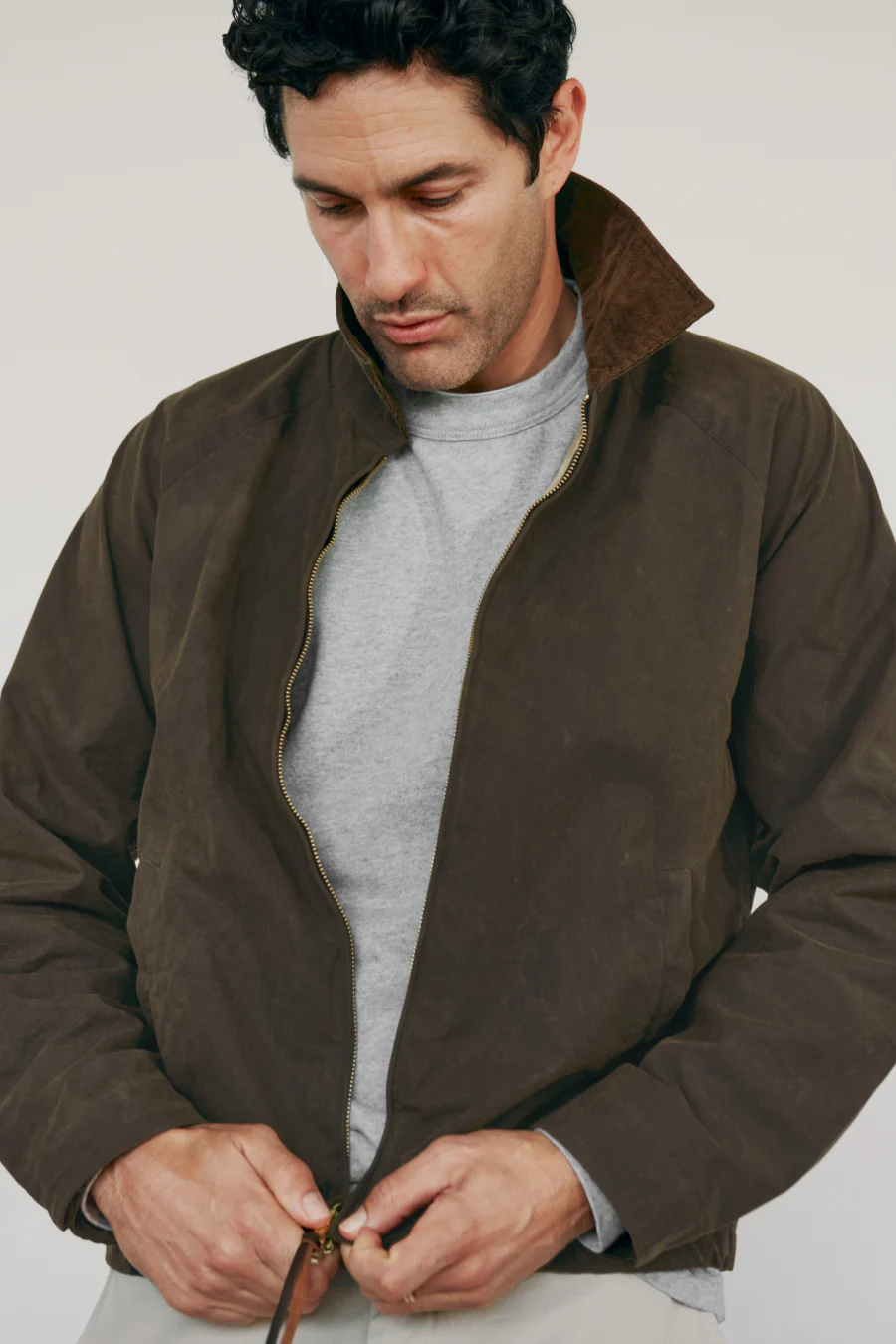 Upland: Weatherproofed waxed cotton direct from the historic British Millerain mill. Light enough for three season-wear. Develops a great patina over time.