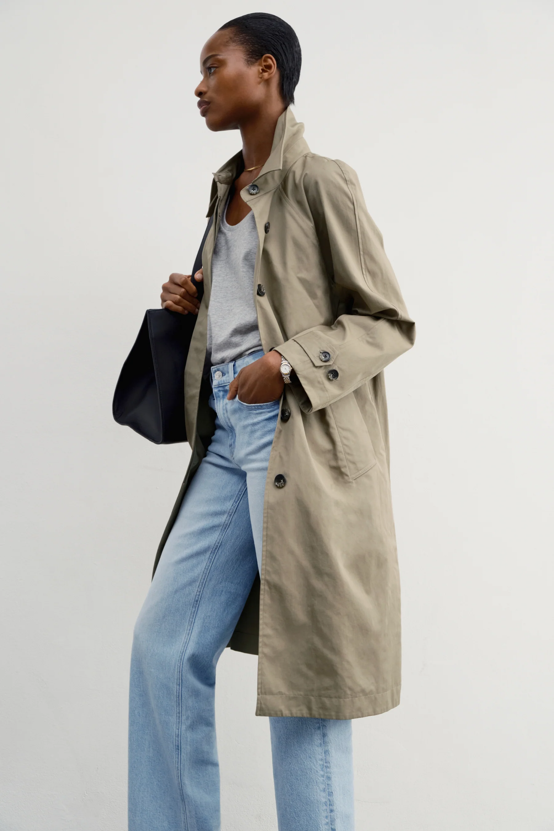 Year-round essential. A classic mac cut from gorgeous Italian cotton poplin with a water-resistant finish. Power collar, raglan sleeve, and a timeless calf-length silhouette.