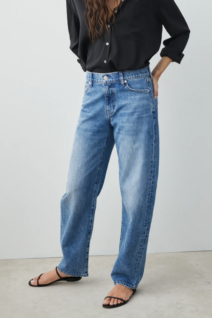 An effortlessly cool silhouette that's both of-the-moment and eternally relevant: nipped-in waist, flattering bowed leg, slight break on the foot.