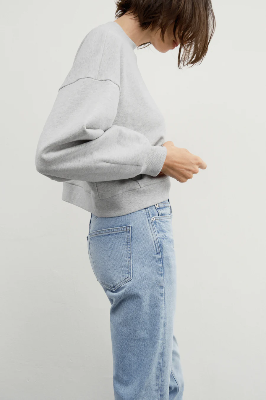 The only sweatshirt you'll ever need. Cut from our signature premium French terry: a soft, cozy, everyday luxury. Swingy cropped body, dropped armholes and voluminous drapey sleeve. Holds its shape no matter how often you wash it. For a full set, pair it with The Bodega Run sweatpant.