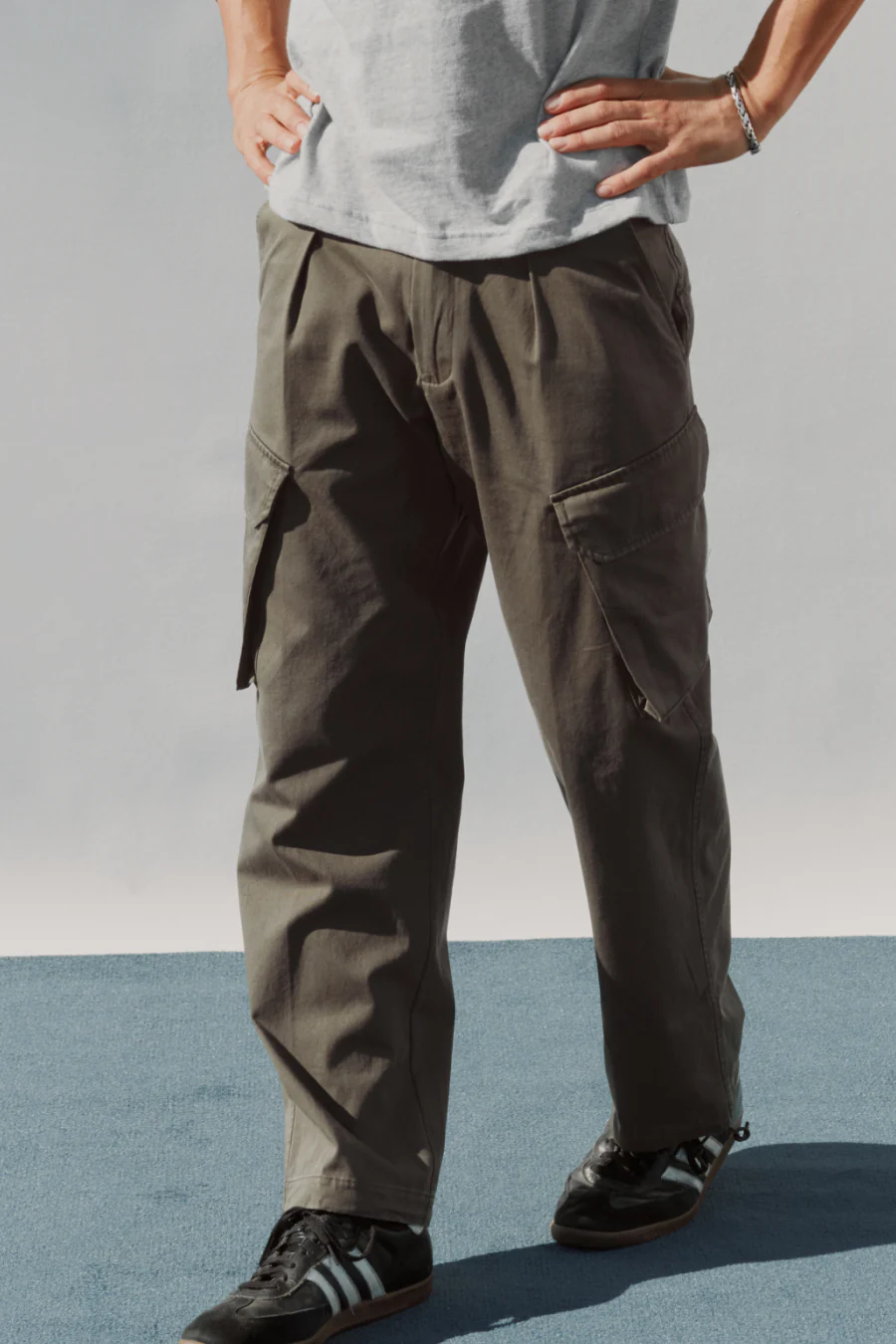 A great lightweight pair of cargos. 100% premium cotton. Adjustable waist tabs for a dialed-in fit. Enough pockets to help you out, but not so many that you feel schubby. Â