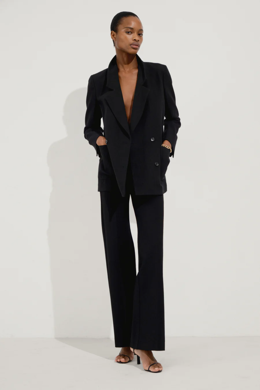 100% Italian cotton. A sophisticated double-breasted blazer that's as comfortable as a sweater. Slim sleeves, deep pockets.