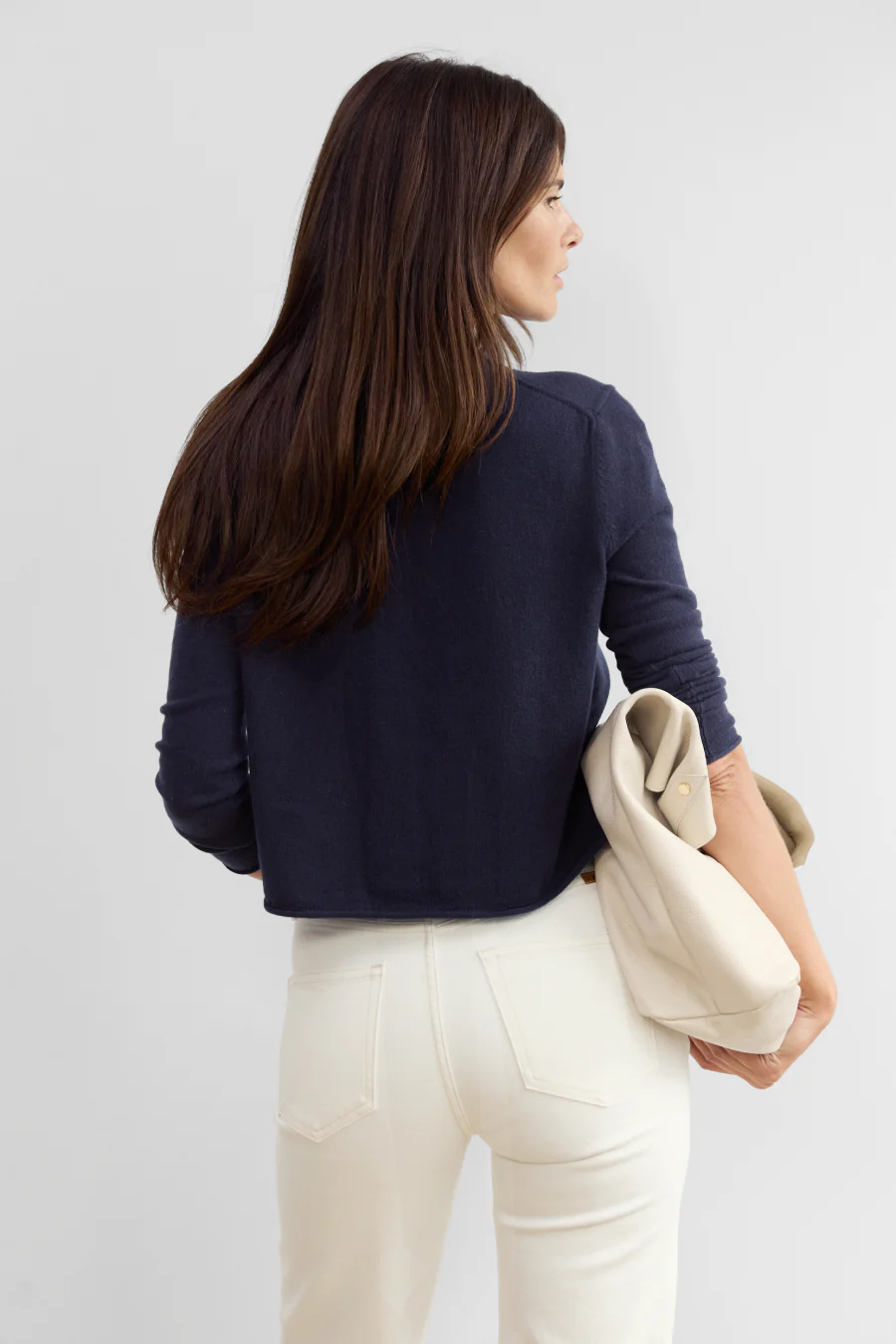 A wearable little luxury. Lightweight premium cashmere cut into a swing-bodied cardigan. Bracelet length sleeves, rolled hems, covered buttons. An ideal companion to every jean (every everything) in your daily rotation.Â