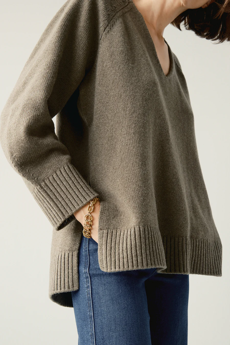 The most indulgent sweater. Knit from the nicest cashmere you’ve ever felt. 100% 2-ply cashmere yarn: as durable as it is decadent. Heavy and luxurious. (There's over a pound of cashmere in this sweater.) Like wearing a chic weighted blanket that gets you endless compliments. Brilliantly constructed so that it falls just so. Intentionally oversized with high hem slits on both sides, which helps it swing over your jeans like the dream that it is. Actual perfection.
